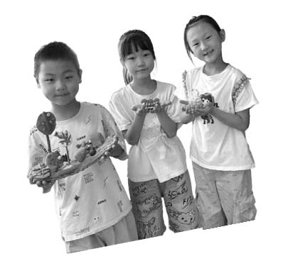 图为无锡市柏庄实验小学同学展示“特色角”的泥塑作品。